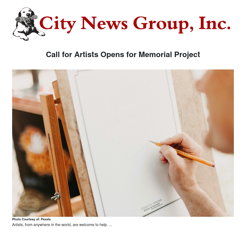 Submittals of interest from artists are due by 5 p.m. on July 16, 2018. Five artists will be chosen from the submissions and selected artists will be commissioned to develop and submit detailed proposals and maquettes. A finalist will then be chosen to produce the memorial.