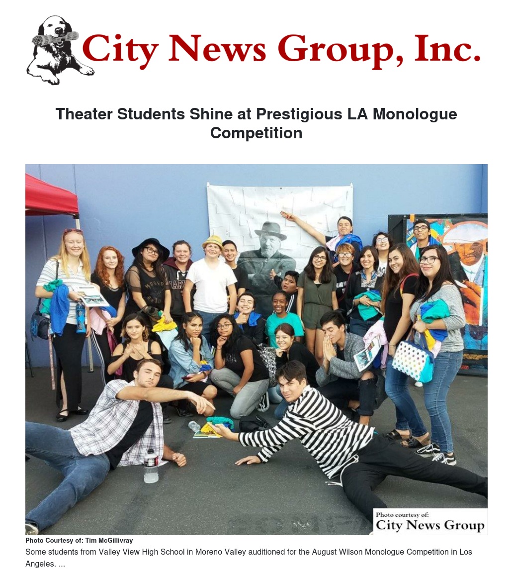 MORENO VALLEY>> Five theater students from Valley View High School are moving on to the semi-finals of the prestigious August Wilson Monologue Competition in Los Angeles.