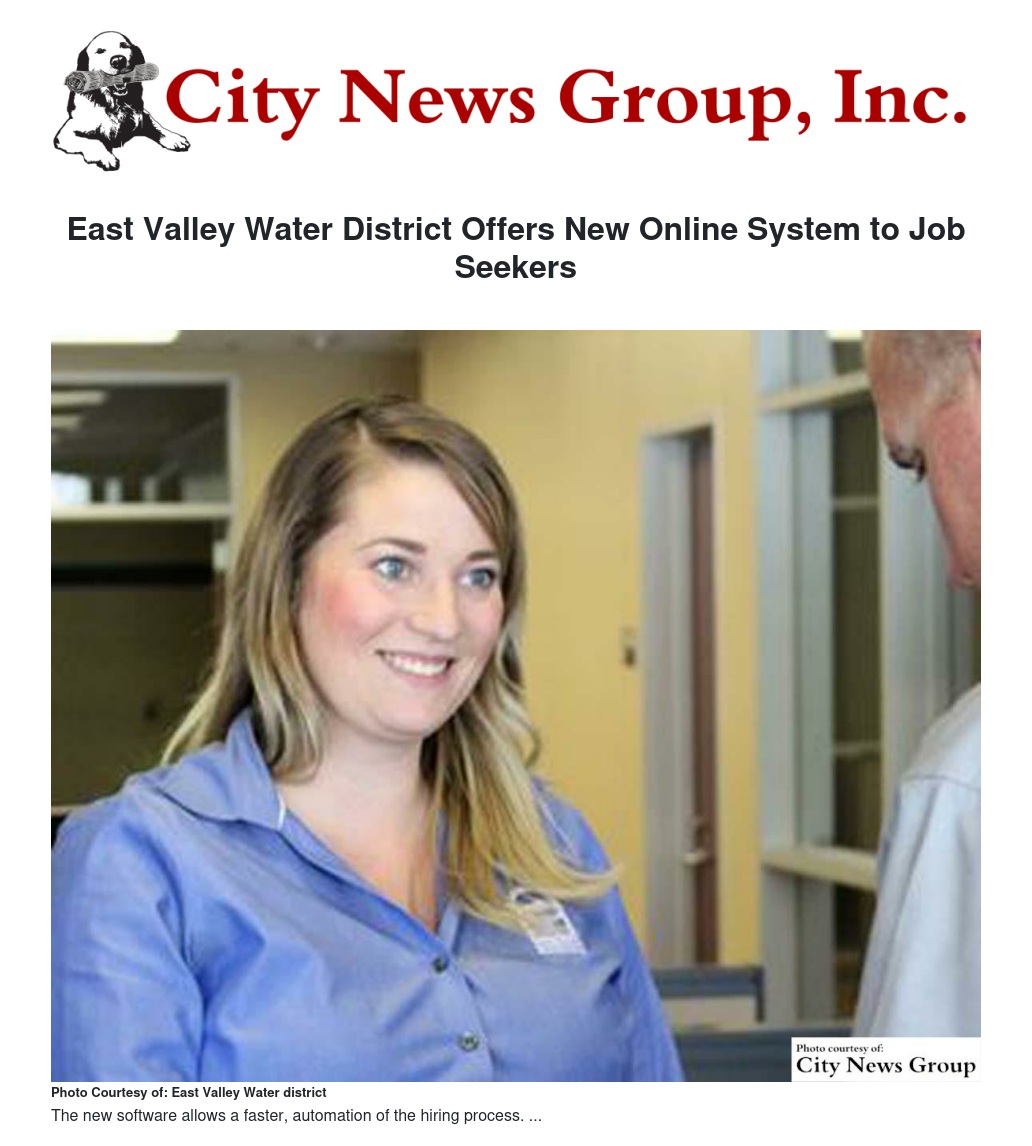 East Valley Water District Offers New Online System to Job Seekers