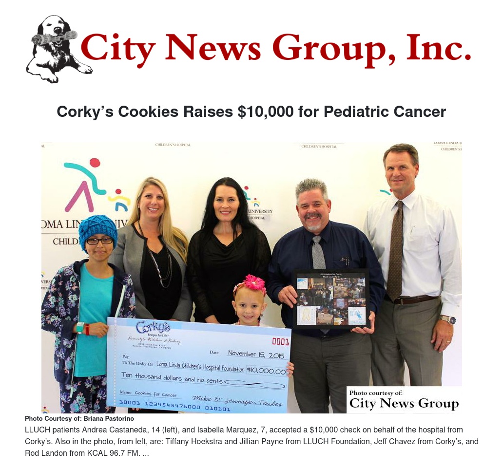Corky’s Homestyle Kitchen and Bakery made a special delivery to Loma Linda University Children’s Hospital (LLUCH) for patients battling cancer.