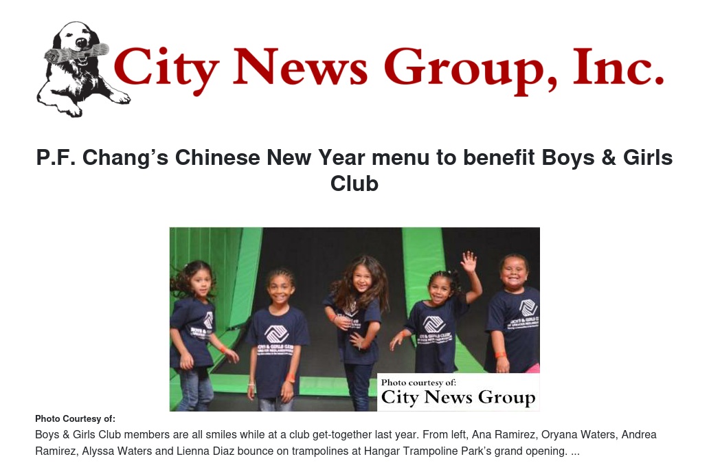 P.F. Chang’s is celebrating Chinese New Year in February by donating proceeds from its special menu to Boys & Girls Clubs.