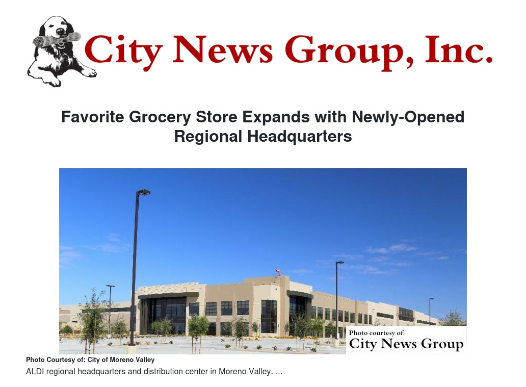 "We are delighted to join the Moreno Valley community and thank the city and its residents for their incredible support," said Gordon Nesbit, vice president, Moreno Valley Division, ALDI U.S. "The expansion of ALDI to Southern California will provide more than 1,100 quality jobs, approximately 200 of which will be located at the Moreno Valley regional headquarters and distribution center. We look forward to bringing industry leading wages and benefits, and career growth opportunities to this community."
