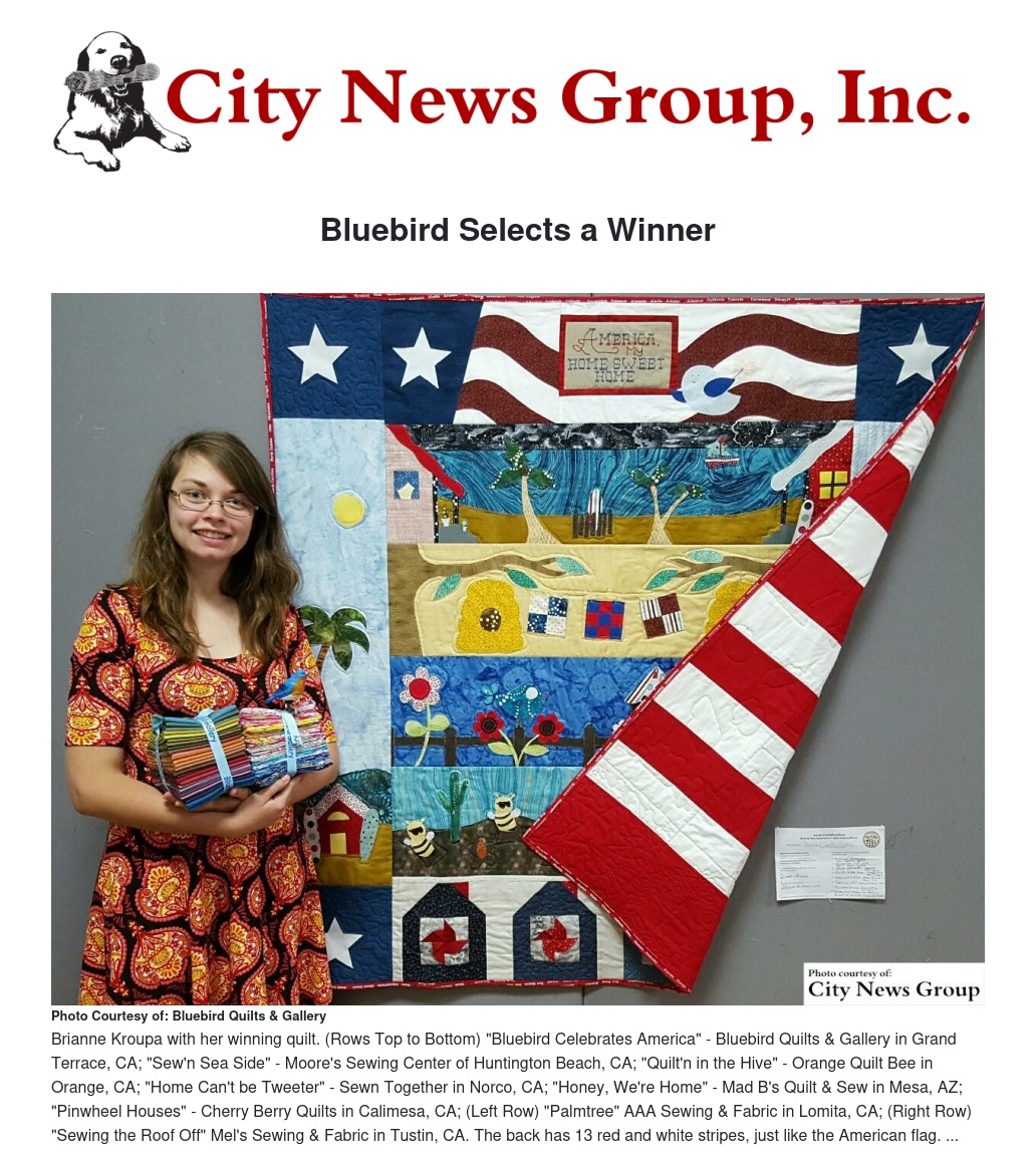 GRAND TERRACE >> Tweet, tweet! The winning participant of the Row by Row Experience at Bluebird Quilts & Gallery has been selected.
