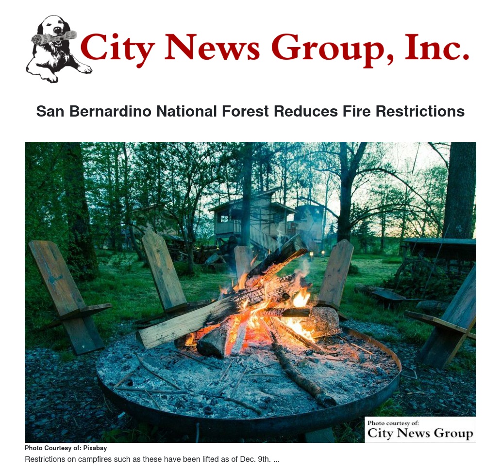 SAN BERNARDINO>> Recent rain and snow across the southland, has moderated fire danger leading fire officials on the San Bernardino National Forest to scale back fire restrictions, effective Friday, Dec. 9.