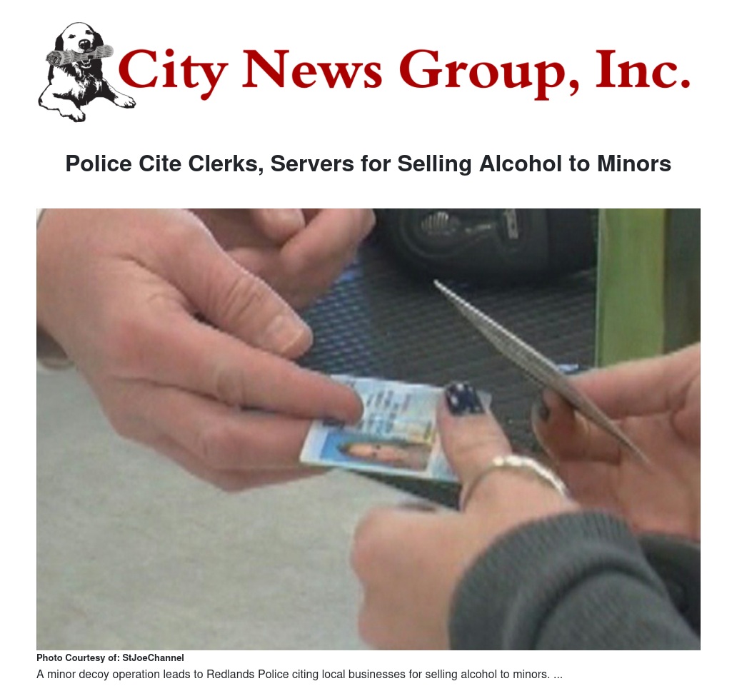 Redlands Police cited clerks and servers at three local businesses for selling alcohol to minors during a minor decoy operation Nov. 14.