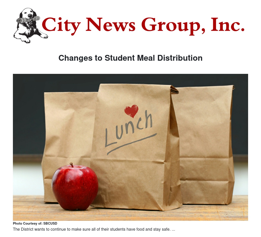 SBCUSD will continue to distribute free breakfast and lunch for students at designated school sites for the foreseeable future. Families are able to pick up several meals at one time between 9 and 11 a.m.