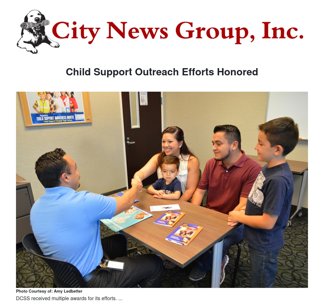 “I am proud of the efforts of the department in reaching our customers, County and community partners and local military in creating an awareness that DCSS is here to help both mothers and fathers to provide for their children and achieve self-sufficiency," said DCSS Director Marie Girulat. “Through one coordinated effort, we have been able to positively impact lives, one family at a time.”
