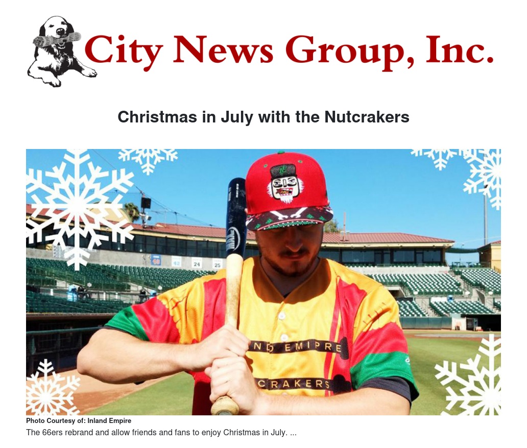 On July 20, 2019, the Inland Empire 66ers of San Bernardino rebrand as the Nutcrackers against the Modesto Nuts and celebrate Christmas in July.