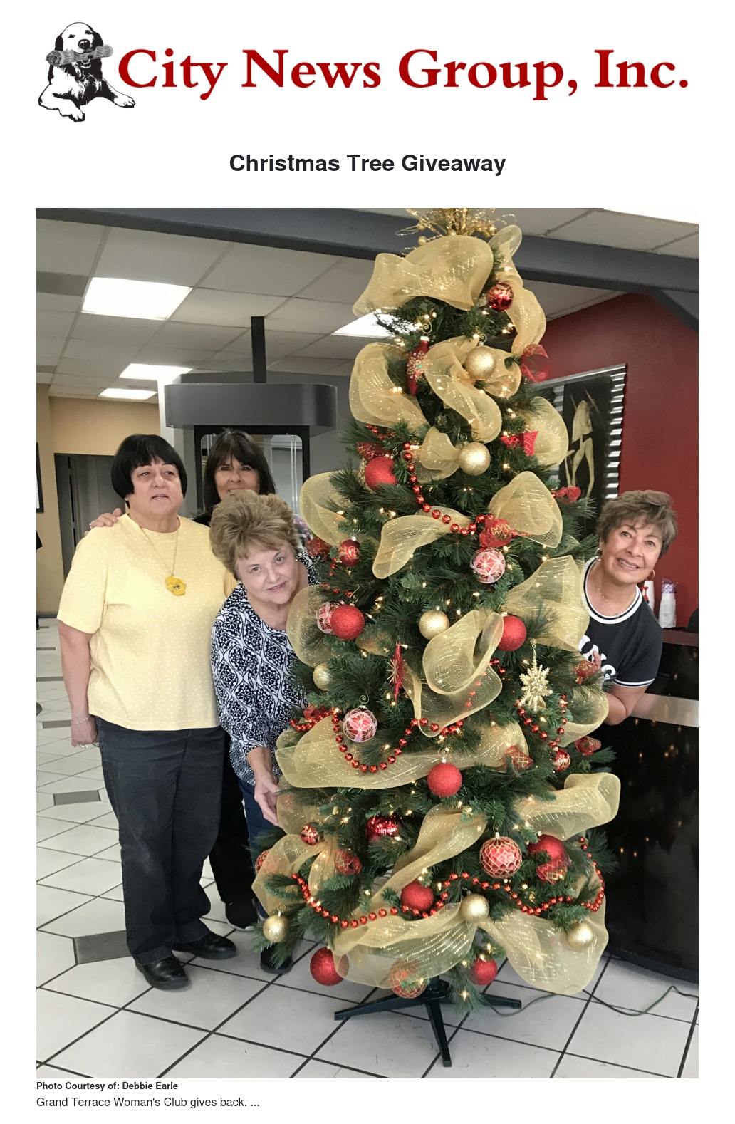 It's that time of year again. When stockings are hung above the fire place and the lights from the Christmas tree are shining. Have you yet to purchase that special tree? Well, here is your chance to WIN one! By entering in the Grand Terrace Women's CLub Drawing you have the chance to win a beautifully decorated Christmas Tree plus several other holiday items on display at Innovations Hair Salon.
