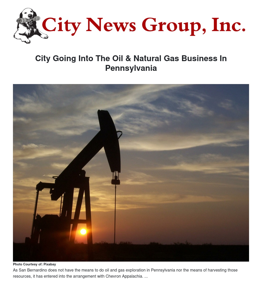 City Going Into The Oil & Natural Gas Business In Pennsylvania