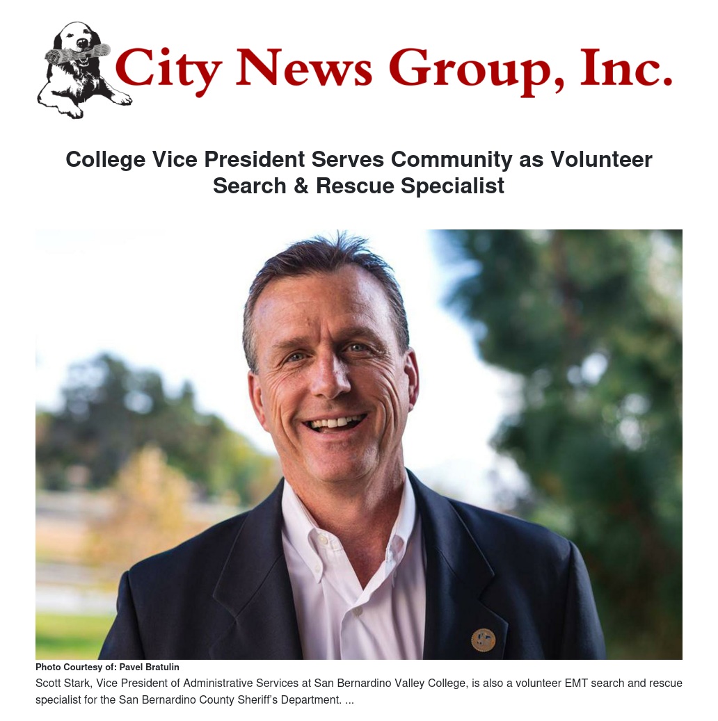 When he’s not at his high-pressure day job, the Vice President of Administrative Services at San Bernardino Valley College, he is on call into the wee hours of the morning to help save those lost, stuck, or injured in the wilderness.