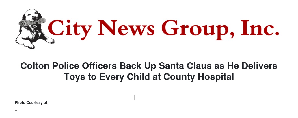 On December 18, 2017 at 9:30AM, members from the Colton Police Officers Association arrive at Arrowhead Regional Medical Center, (ARMC), to deliver toys, candy canes and Christmas cheer to kids and families spending the holidays in the hospital. Santa Claus will make a special appearance throughout the hospital starting in the lobby, emergency department, and into the pediatrics unit. Assisting the police department will be members of the Colton High School Cheerleading Squad and the Colton High School Marching Band.