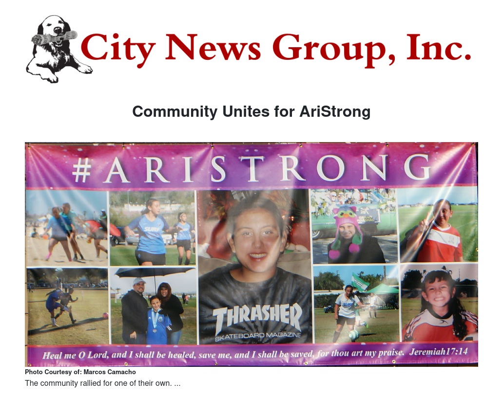 City News Group was proud to be a sponsor and asks that you please keep Ari in your prayers and spread her story to others in your family, community and church.