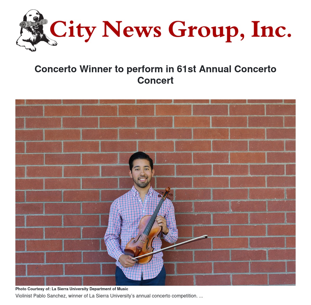 Sanchez earned a Bachelor of Music degree in 2015 from Andrews University in Michigan, also an Adventist school. While there he studied with Carla Trynchuk and studied one summer in California with Lyndon Taylor, a former La Sierra violin instructor and current Los Angeles Philharmonic principal second violinist. At the behest of Taylor, Sanchez next enrolled in the Performer’s Certificate program at La Sierra under the tutelage of Director of String Studies Jason Uyeyama who also performs with the LA Phil, Camerata Pacifica and other major groups.
