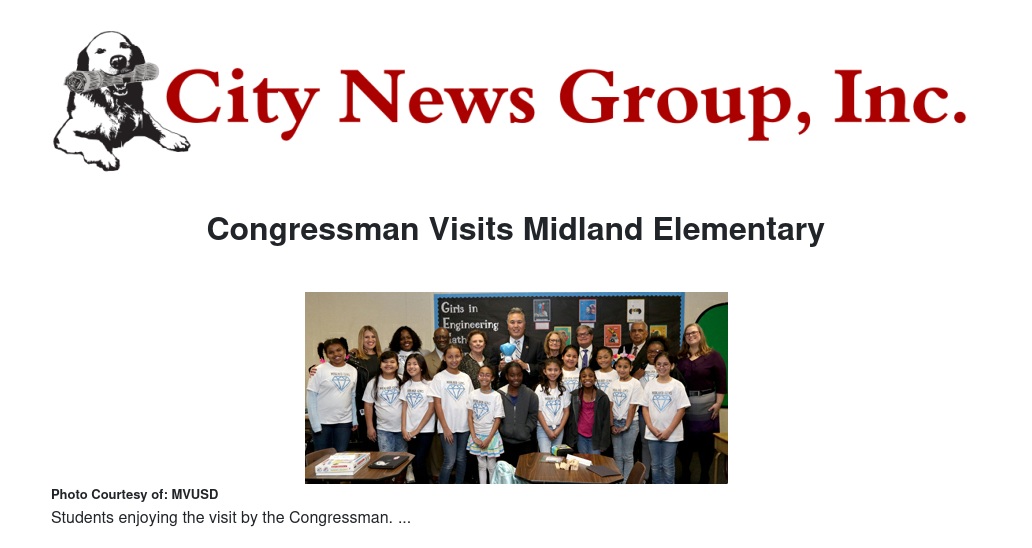 “This was a great opportunity for us to demonstrate how we provide a 21st-century education to our students,” said Board Member Susan Smith, “Mr. Takano’s visit to Midland Elementary School is a proud moment for our district and the community should be very happy that their schools are being recognized for being leaders in preparing students for future careers.”