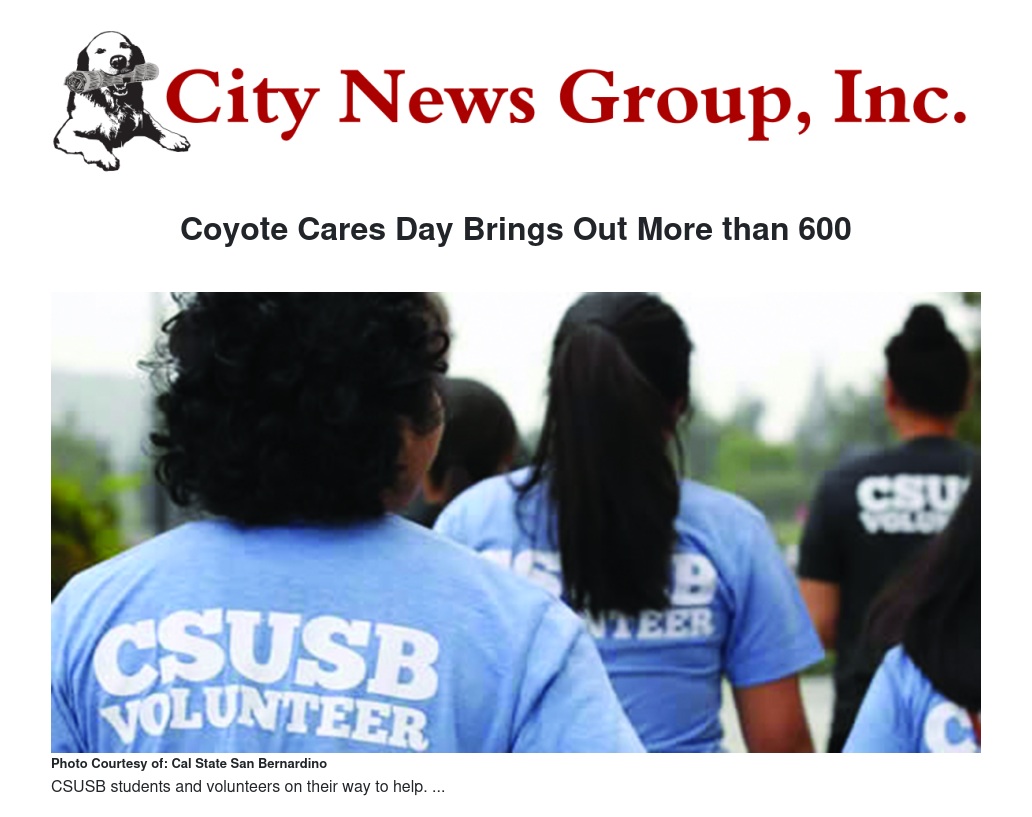 The group completed projects both on campus and off campus to benefit local nonprofit organizations and community agencies as part of Coyote Cares Day, which took place at the end of National Volunteer Week. Coyote Cares Day is a day of volunteer service that provides CSUSB students with an understanding of the work of nonprofit organizations, and engages the students through volunteer service, said Bryant Fairly, associate director of the university’s Office of Community Engagement, which sponsored the event.