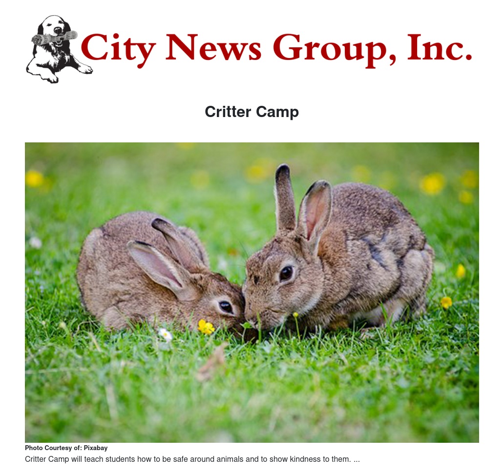The Humane Society of San Bernardino Valley is hosting its annual “Critter Camp” – a week-long, interactive, learning experience for students entering the second, third, fourth and fifth grades. The camp will be held July 23rd – 27th from 8:30 a.m. to 12:30 p.m.