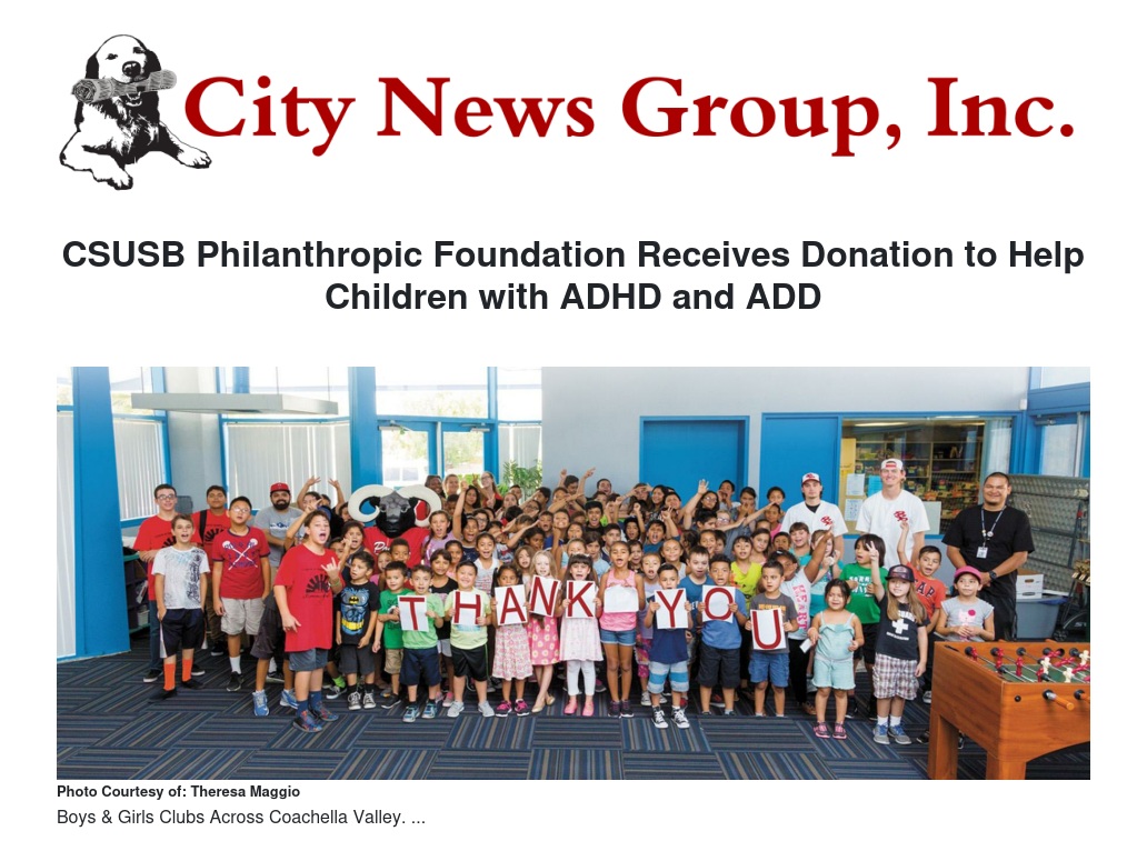 CSUSB Philanthropic Foundation Receives Donation to Help Children with ADHD and ADD