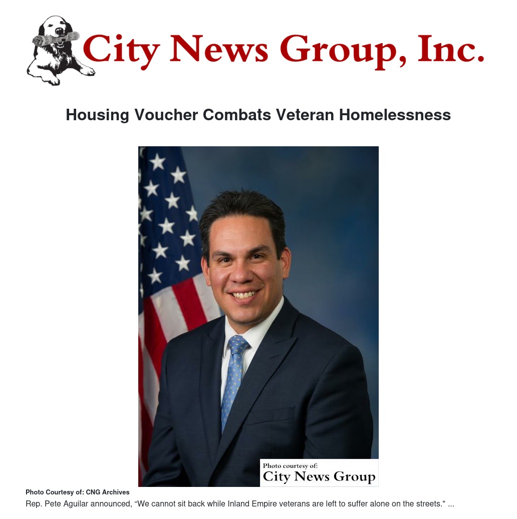 Earlier this year, Rep. Aguilar called on the House Appropriations Committee to allocate crucial funding to the HUD-Veterans Affairs Supportive Housing (HUD-VASH) program, which combines rental assistance in the form of a HUD voucher to assist homeless veterans.