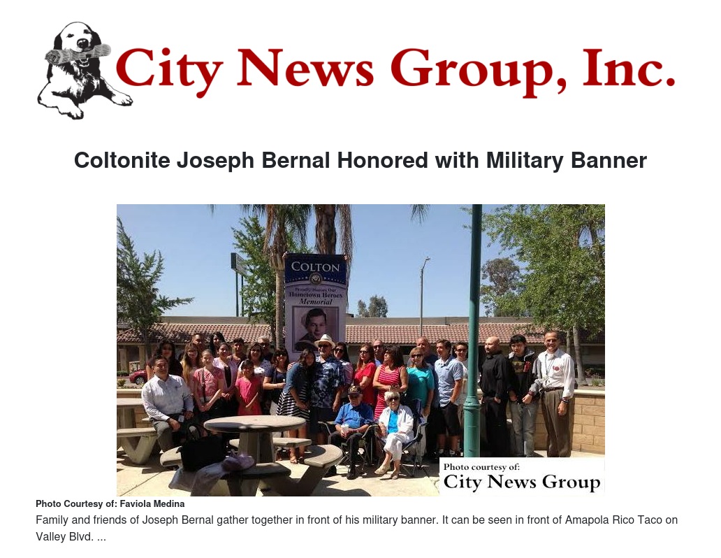 Coltonite Joseph “Joe” Bernal was honored for his service in the Military by his friends, family, and the City of Colton with his very own banner installation ceremony this past June.