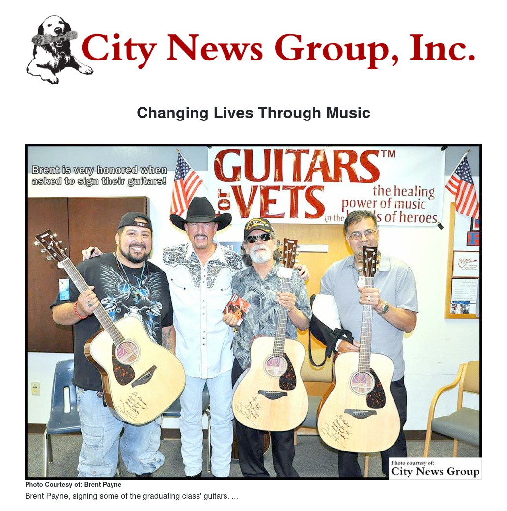 Guitars For Vets, a program at the hospital, recently held their graduation. Payne showed up for hours, talking with the vets, signing guitars and handing out free CDs to those in attendance.