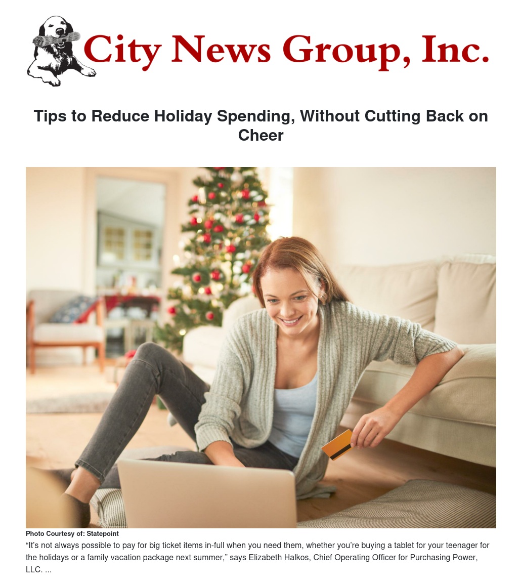 Spend differently. New ways to pay for items can make the task of budgeting organized and straightforward. Check out specialty e-retailers like Purchasing Power, which is offered by many employers as a voluntary benefit, and gives workers an opportunity to shop for thousands of brand name products they need now, for which they can make manageable payments over time through payroll deduction. With no credit checks, hidden fees or interest, it’s a service you may find gives you more flexibility over a traditionally expensive season.