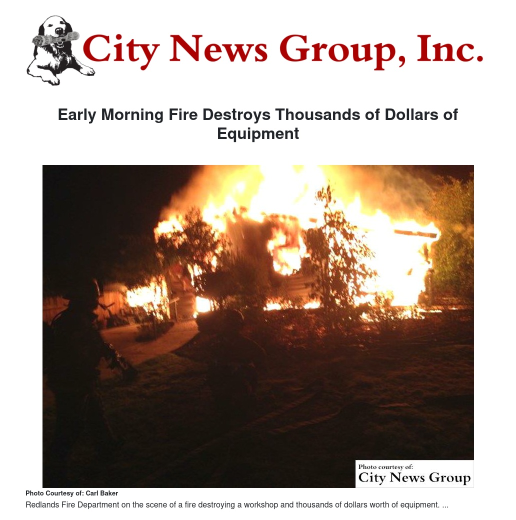 Redlands Police were first on the scene and discovered the location was actually an outbuilding in the 1400 block of Fernwood Drive, which was fully engulfed.