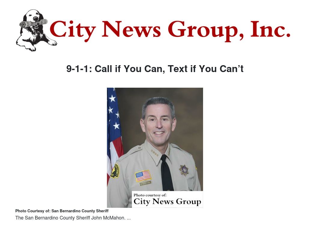 The San Bernardino County Sheriff’s Department, the California Highway Patrol (CHP) and State Emergency Communications 9-1-1 officials recently announced that local San Bernardino County law enforcement agencies and fire agencies Public Safety 9-1-1 Centers (dispatch) will be equipped to receive and respond to mobile phone SMS Text-to-9-1-1 messages.