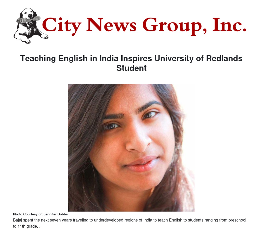 While Bajaj seems to have already honed her teaching skills, she knows that there is always more to learn. As a psychology and education student, Bajaj is applying her previous experience to her studies while also gaining new insight. “I had zero training before I went to India,” she says. “Being at Redlands, I’m finally understanding the theories and principles of education.”