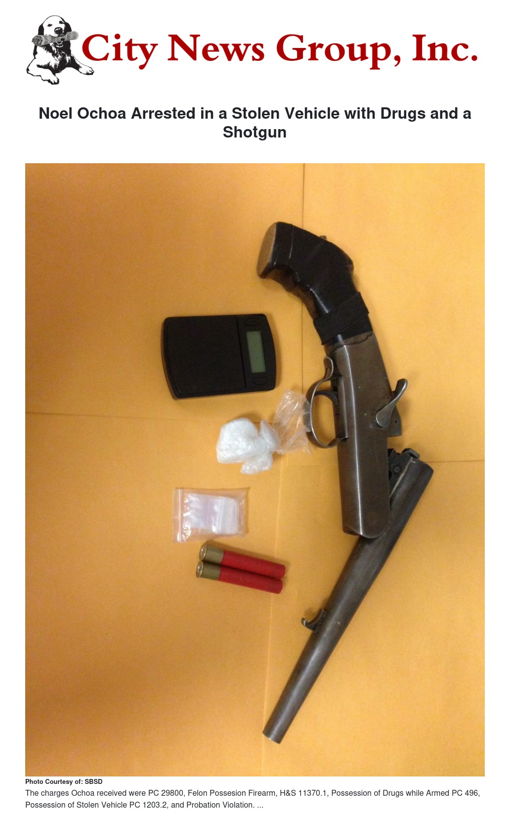 Noel Ochoa Arrested in a Stolen Vehicle with Drugs and a Shotgun