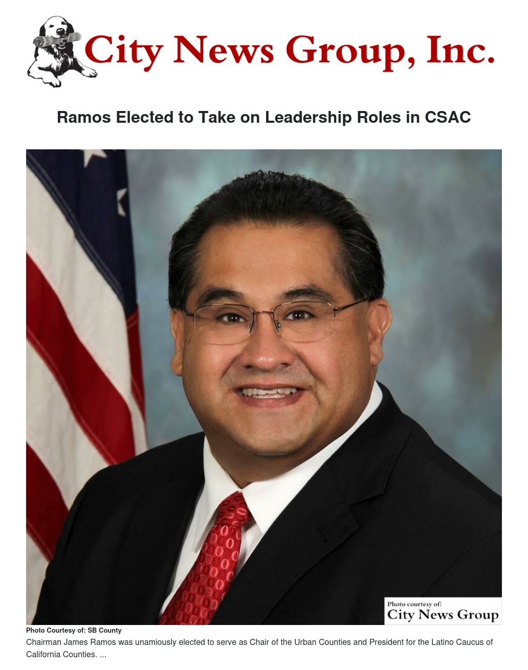 ALL>> Earlier this month, Chairman James Ramos attended the 122nd Annual California State Association of Counties Conference in Palm Springs where he was elected unanimously by his peers to serve as Chair of the Urban Counties Caucus and President for the Latino Caucus of California Counties.