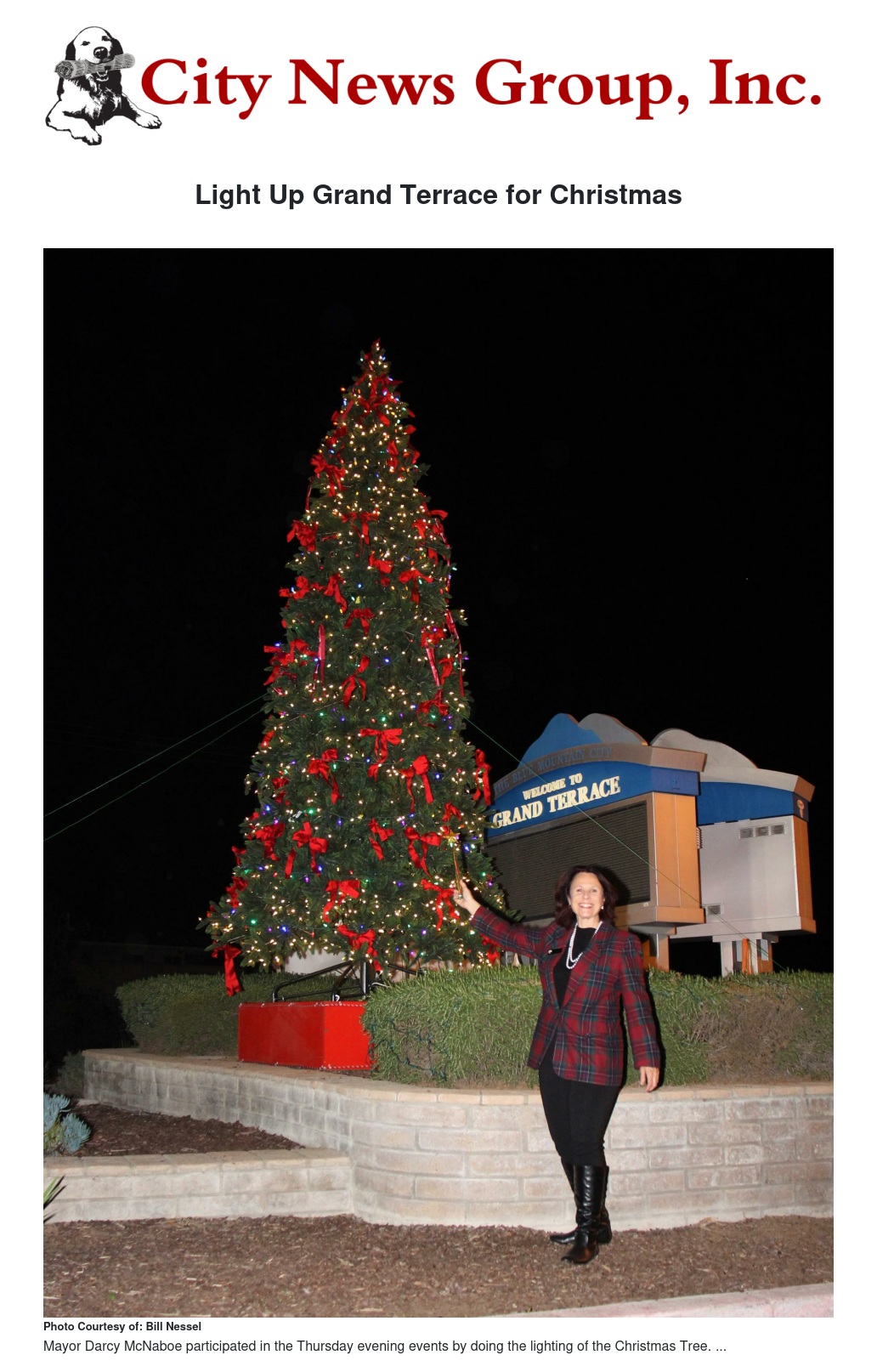 This past Thursday evening November 30, 2017 between the hours of 4 to 9 p.m. at Azure Hills Church parking lot; the community came together to witness the celebration of the lighting of the Christmas tree located at the corner of Barton Road and Palm Avenue. Again this year, there were many local businesses and youth organizations that had set up booths in the parking lot to both entertain and sell Christmas gifts to the local residents who had come out to enjoy the festivities. This year a special booth was created to allow children to ice skate, and other booths were available to get hot chocolate and other beverages and munchies. The highlight of the evening, of course, was the lighting of the Christmas tree, with Grand Terrace Mayor Darcy McNaboe overseeing the proceedings and wishing everyone joy and happiness during the holiday season. There was an excellent turnout to this year’s event, and everyone in attendance gave praise to all of the vendors and especially to the city workers who made this now traditional holiday highlight a reality. Merry Christmas and Happy New Year.