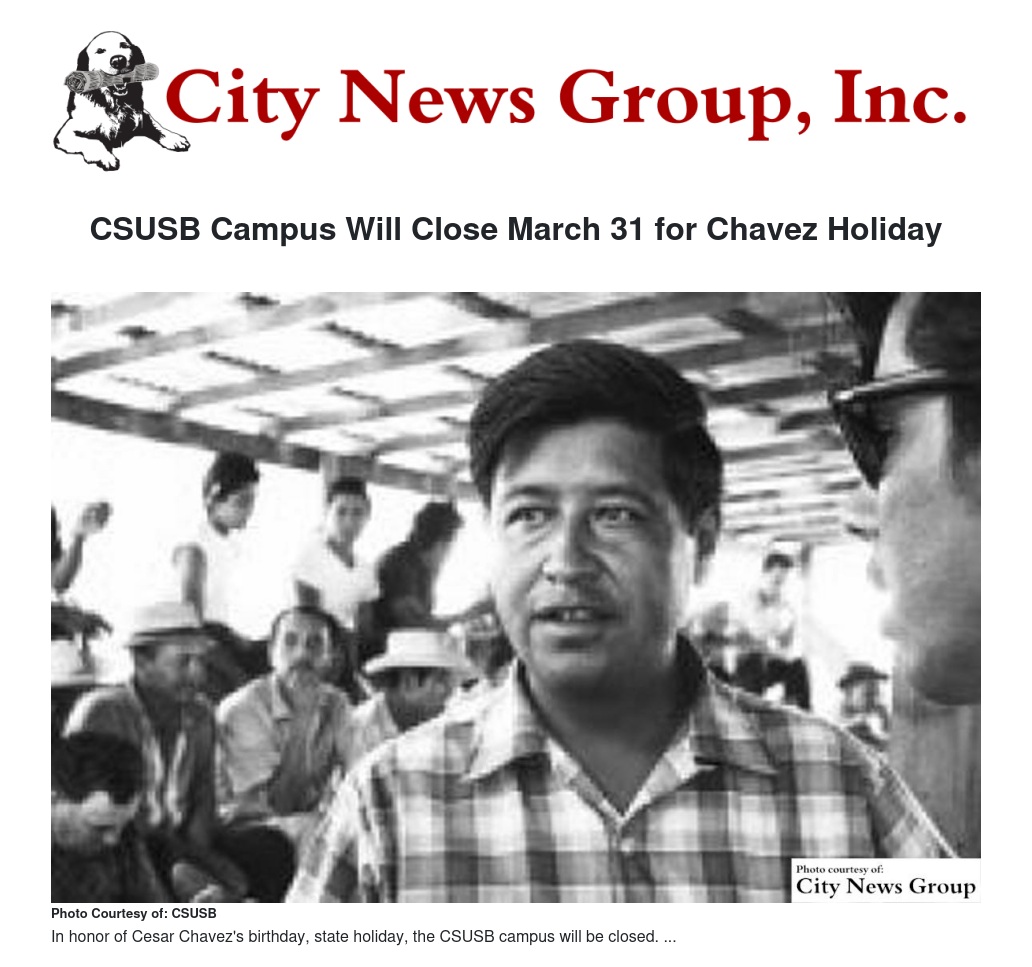 CSUSB Campus Will Close March 31 for Chavez Holiday