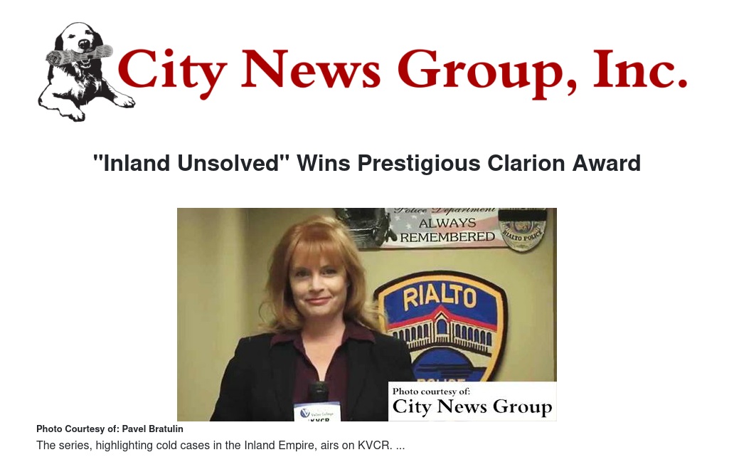 "Inland Unsolved" Wins Prestigious Clarion Award