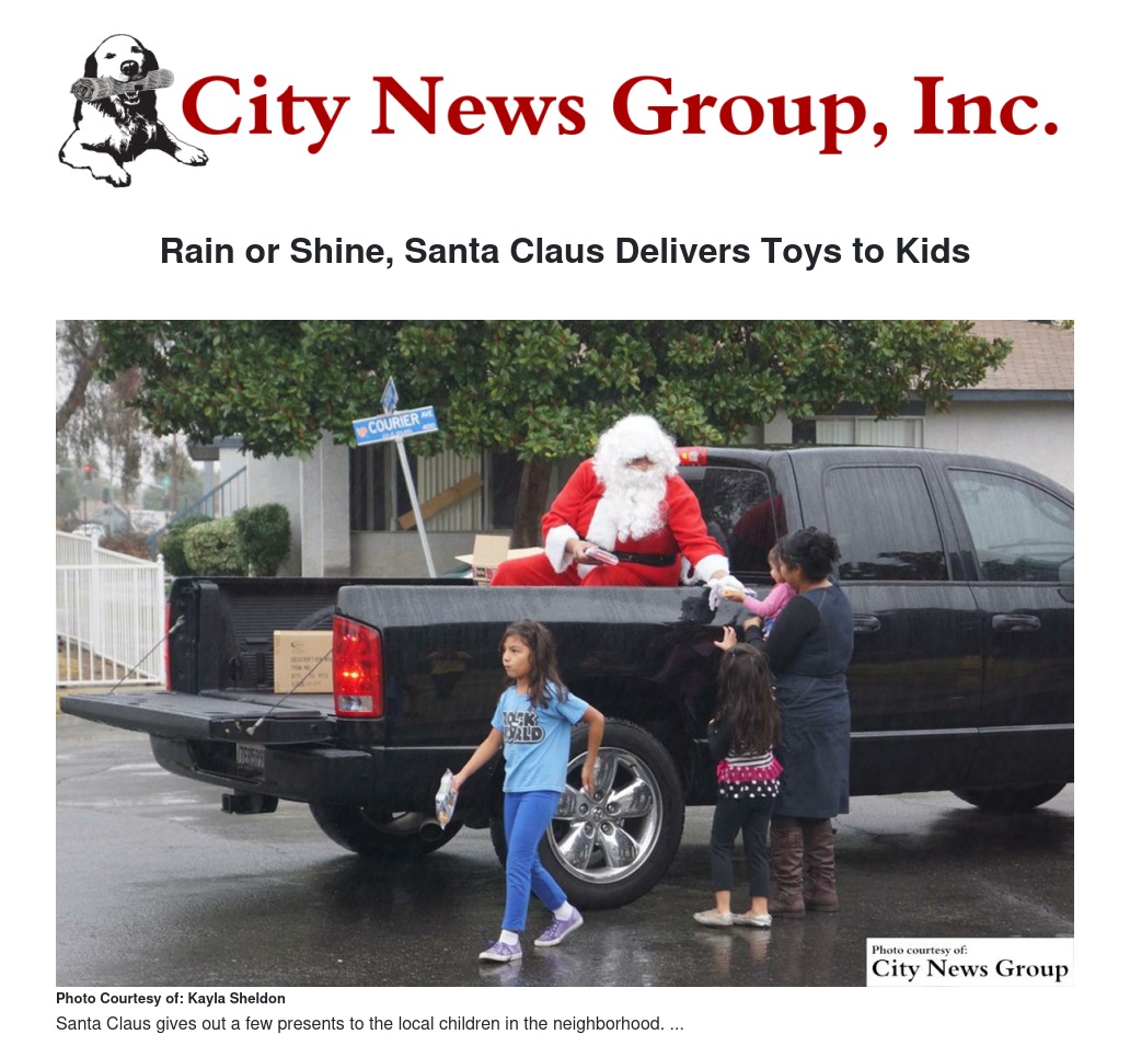 Rain or Shine, Santa Claus Delivers Toys to Kids