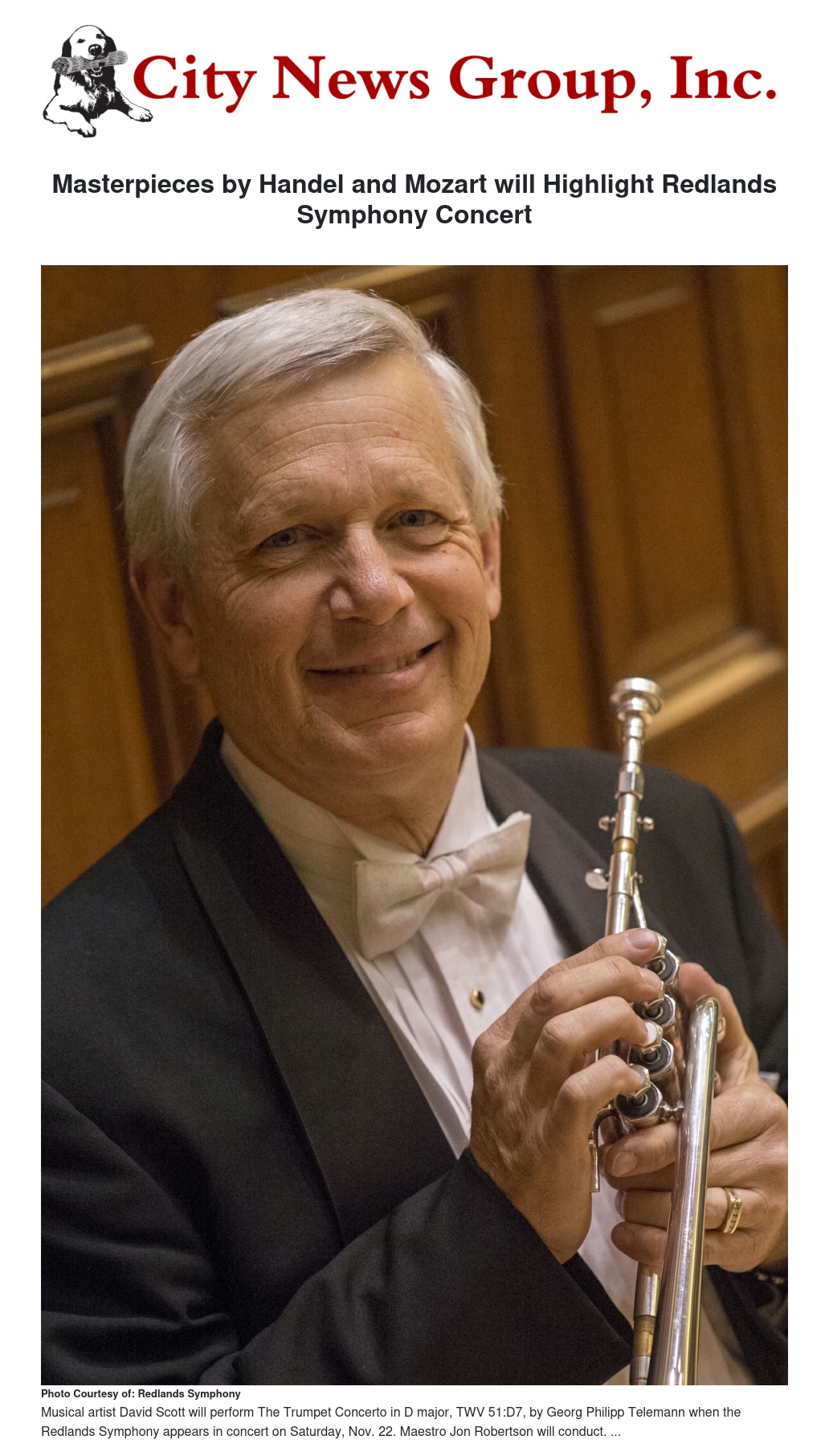 An evening of 18th century masterpieces by Handel, Telemann and Mozart will fill Memorial Chapel on the campus of the University of Redlands when the Redlands Symphony stages its second concert of the 2014-15 season on Saturday, Nov. 22, with Maestro Jon Robertson conducting.