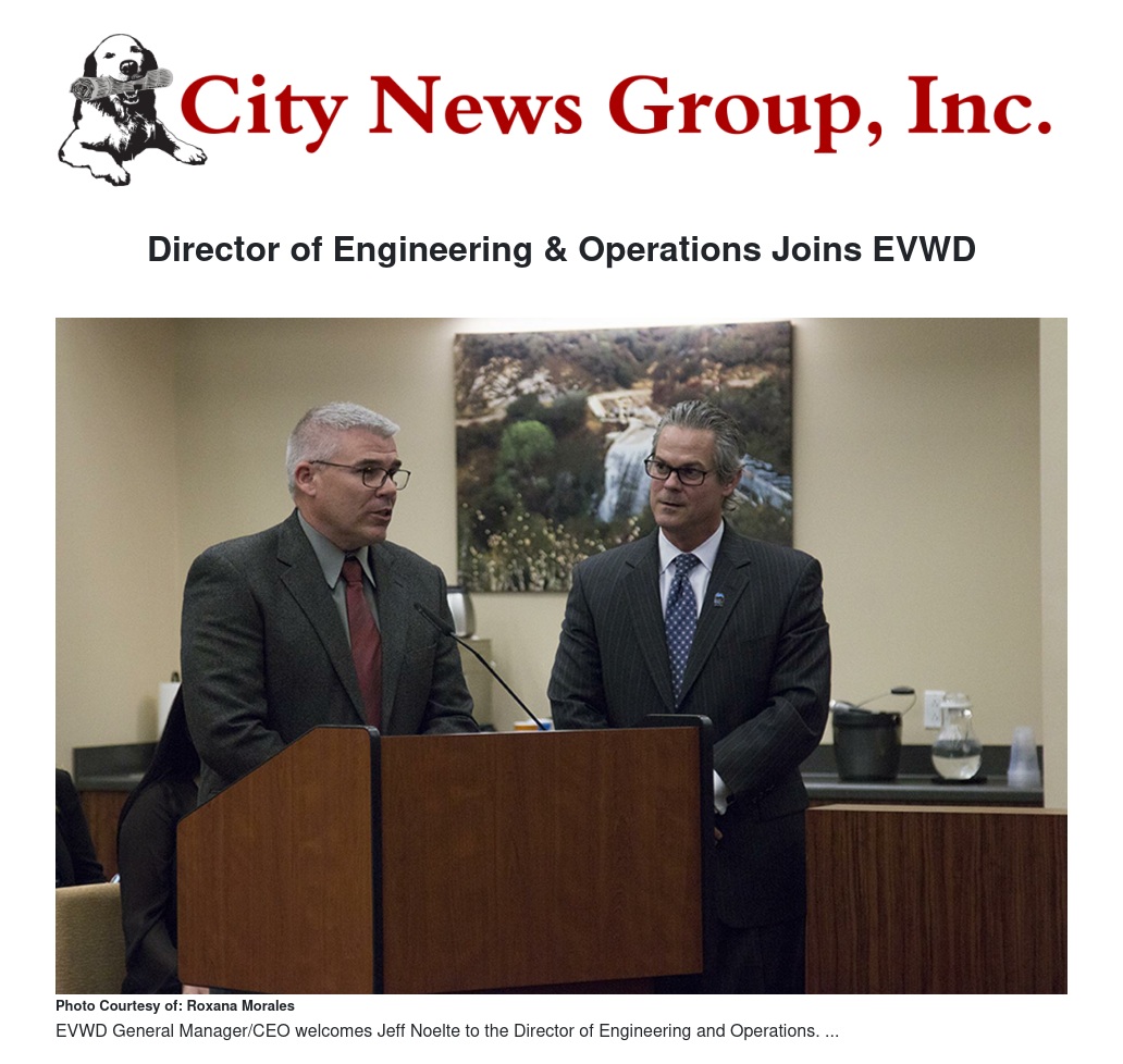 “I am proud to join East Valley Water District and appreciative of the opportunity to serve the community through the management of projects that impact customers’ quality of life,” said Mr. Noelte.