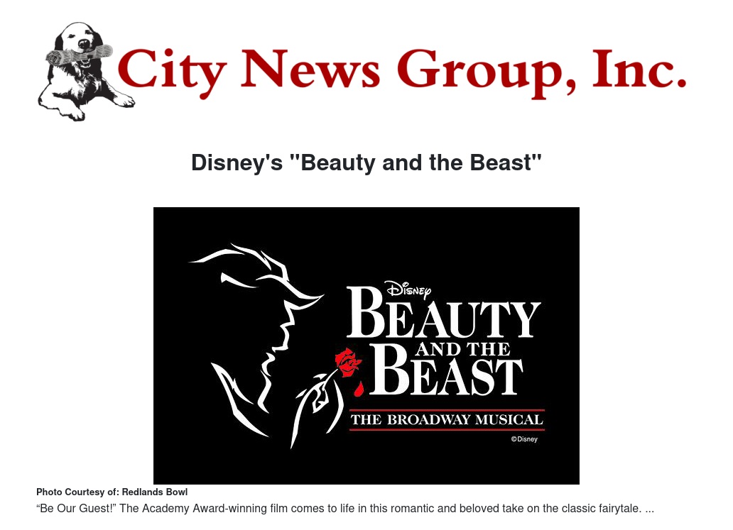 “We are thrilled Wayne Scott will once again bring Beauty and the Beast to life on the Redlands Bowl stage. It’s hard to believe it’s been over 10 years since it’s last run here and we are truly excited to bring Disney’s acclaimed Broadway production to a whole new generation of Bowl attendees!” said Valerie Peister, RBPA Program Director.