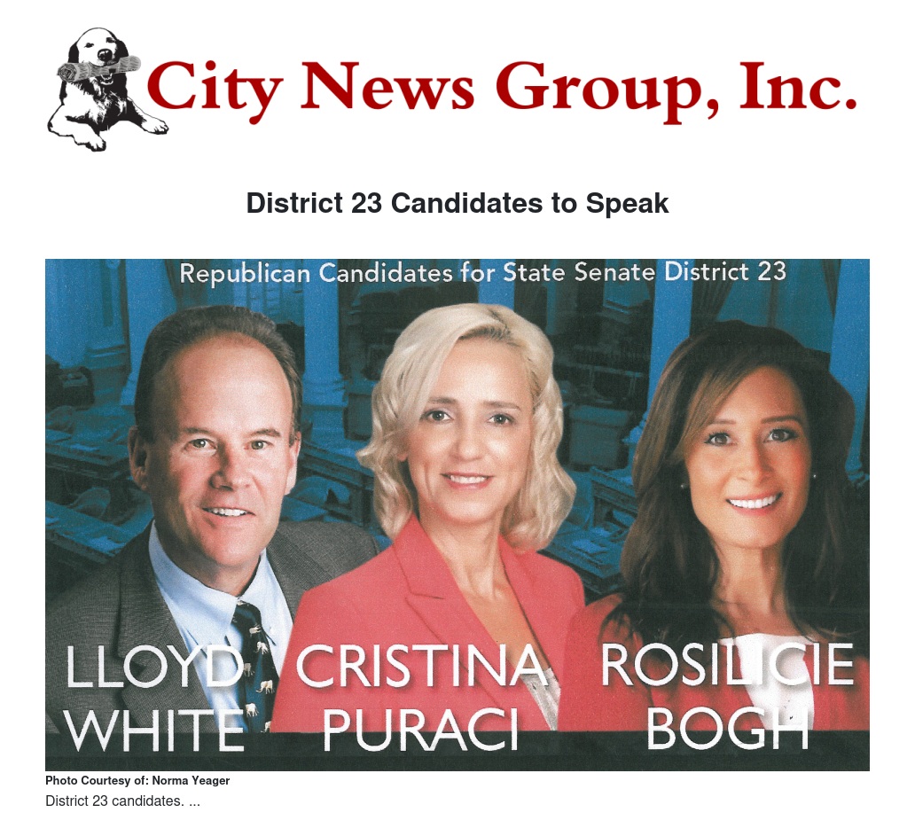 On Friday, October 18th, 2019 the Redlands Republican Women's Club is pleased to announce that three Republican candidates for State Senate District 23 (Senator Mike Morrell’s seat) will be the speakers at the Club's lunch meeting. The meeting will be held at the Redlands Country Club starting at 11:30 a.m. with lunch served at noon, and the presentation scheduled at 12:30 pm. The cost for lunch is $20 and reservations must be made by October 16th. For reservations call Lori Tremain at (909) 792-2501. If you want to hear the speakers and not have lunch, there is no cost and there will be seats available.