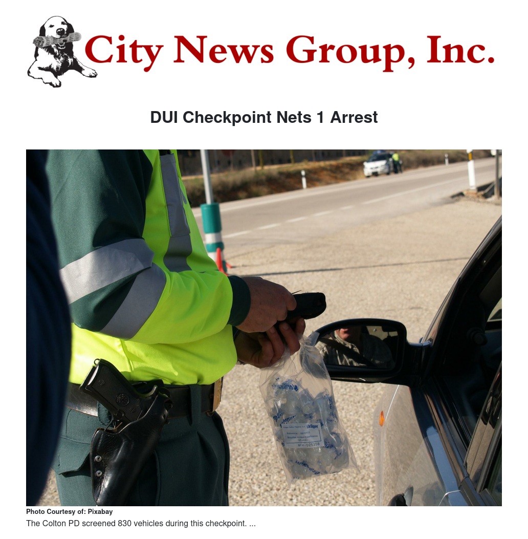 The Colton Police Department will be conducting another DUI/Driver’s License Checkpoint on Saturday February 3rd in our ongoing commitment to lowering deaths and injuries upon our streets and highways.