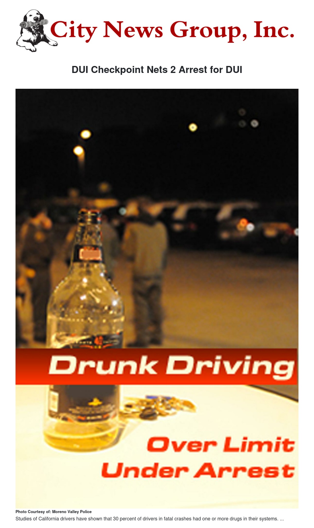 The Moreno Valley Police Department will be conducting another DUI/Driver’s License Checkpoint or DUI Saturation Patrol in the near future as part of our ongoing commitment to lowering deaths and injuries upon our streets and highways.