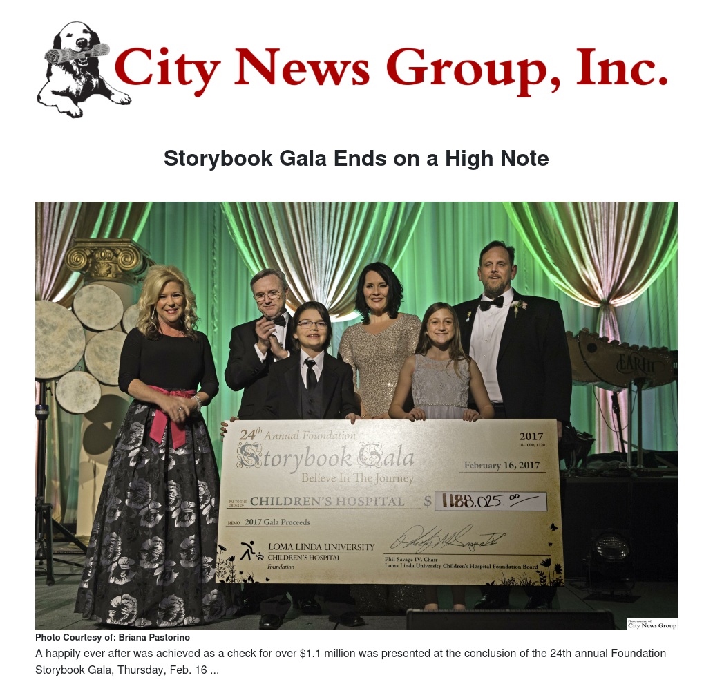 “The success of this year’s ‘Storybook Gala’ will allow Loma Linda University Children’s Hospital to rewrite the landscape of health care,” said Joanna DeLeon, director, LLUCH Foundation. “We are here for one reason – the children. And we want to create a happily ever after for every child we treat.”