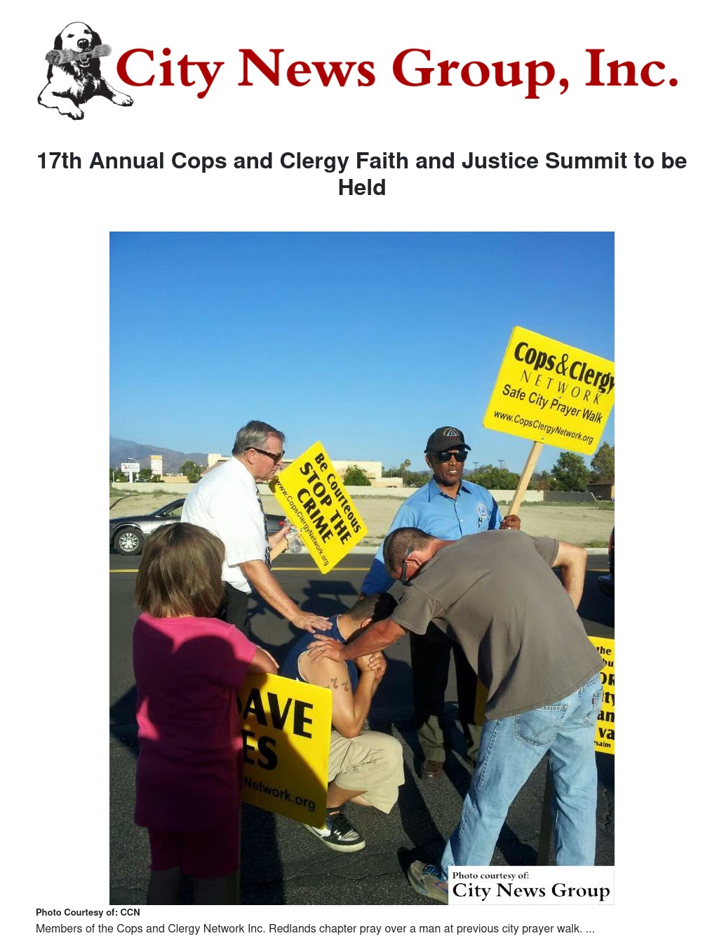 REDLANDS>> With a theme of "Community and Police Relations," the 17th annual Faith and Justice Summit, hosted by the Cops and Clergy Network Inc. Redlands and Yucaipa chapters, is scheduled Thursday, March 16, at Yucaipa First Assembly Church, 12226 Second St., Yucaipa.