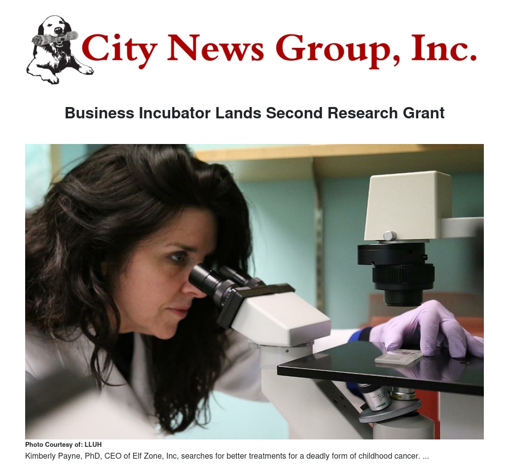 The grant, a $299,999 Phase 1 SBIR award from the National Institutes of Health, goes to Elf Zone, Inc., a woman-owned business that is one of eight startup firms at the incubator. SBIR stands for small business innovation research, a federal program designed to support small businesses conducting research and development projects with commercial potential.