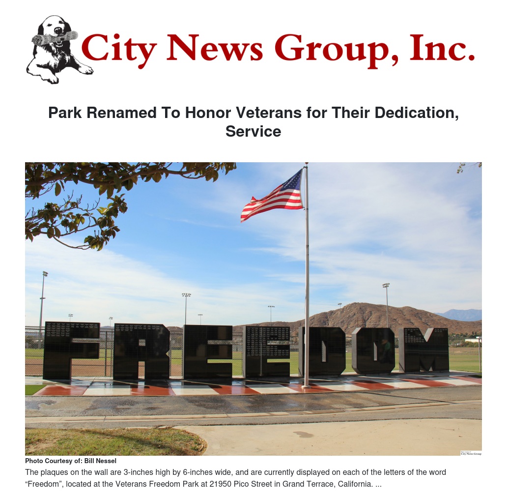 So when Grand Terrace resident and former Grand Terrace Council Member Jim Miller brought the idea of renaming the park to “Veterans Freedom Park” the council all agreed that was the perfect name for the park that would help honor all veterans for their service.