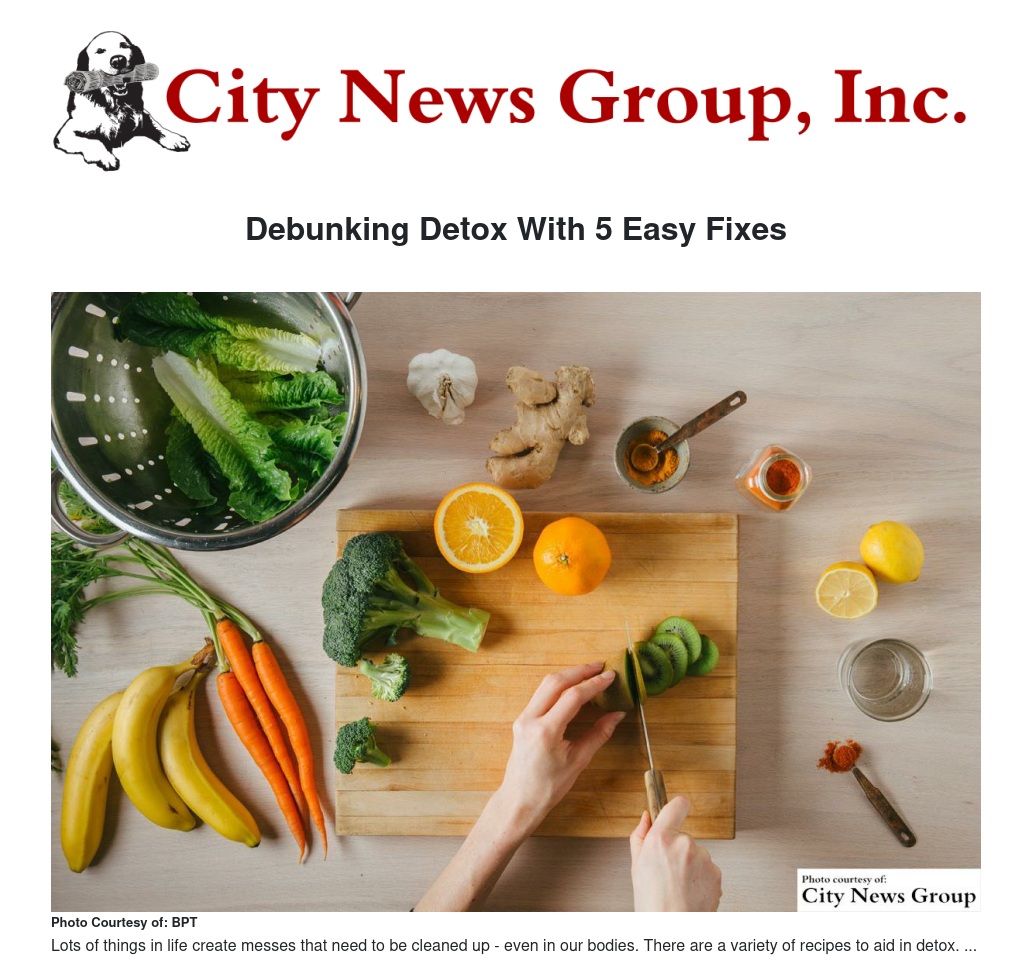 The goal of detoxing is to eliminate toxins in the body. Toxins are unusable products resulting from the metabolism of nutrients, pollutants, pesticides, food additives, medical drugs and alcohol. A true detox doesn't require fasting or flushing your colon clean, instead it's finding ways to boost your body's own natural detoxification system to rid itself of harmful toxins. Just follow these five easy detox fixes from Registered Dietitian Ashley Koff to clean-up your diet and your health: