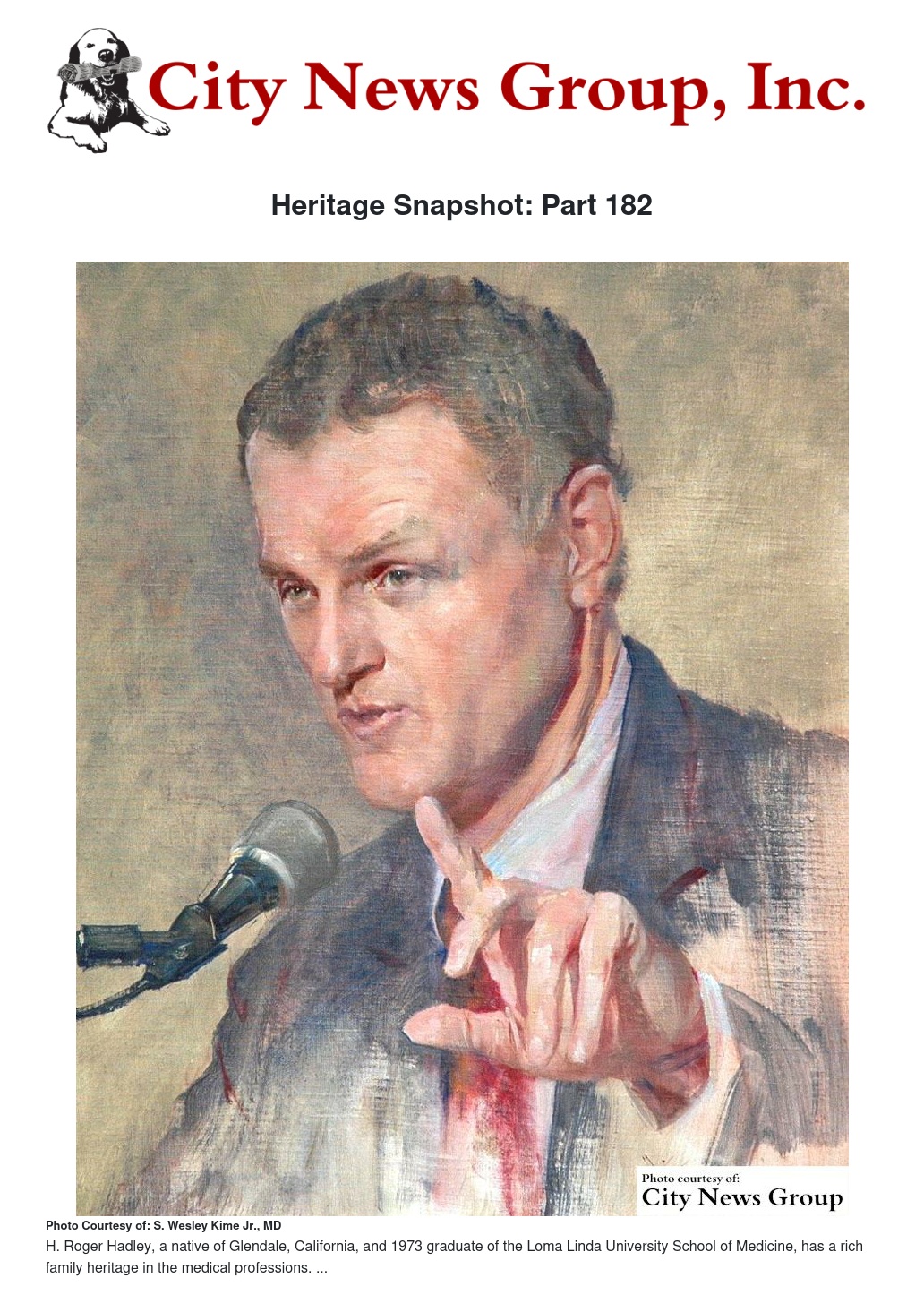 H. Roger Hadley, a native of Glendale, California, and 1973 graduate of the Loma Linda University School of Medicine, has a rich family heritage in the medical professions. His mother, Bonnie Lee Barnes, was a nurse. His father, Henry L. Hadley, two grandfathers, Henry G. Hadley and Roger W. Barnes, and Uncle, G. Gordon Hadley, were physicians—all graduates of the College of Medical Evangelists. Roger was named after his grandfather, Roger W. Barnes, one of the “Giants” of CME.