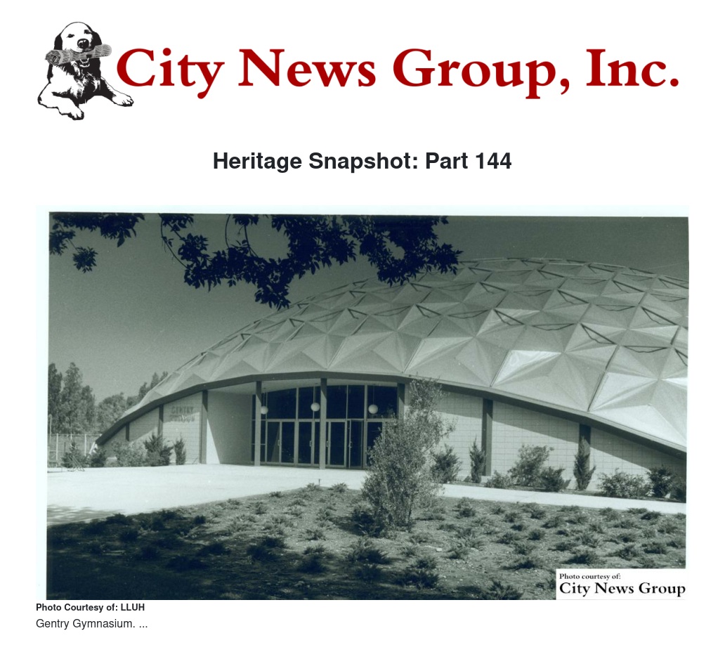 A groundbreaking ceremony for the gymnasium was scheduled for Sept. 27, 1966. On Nov. 1, 1966, Mr. Dale Gentry received double honors from Loma Linda University. At a noon meeting of the President’s Committee, when Administration announced that the largest aluminum geodesic dome gymnasium in the United States would be named in his honor, they also named Gentry “University Associate.”