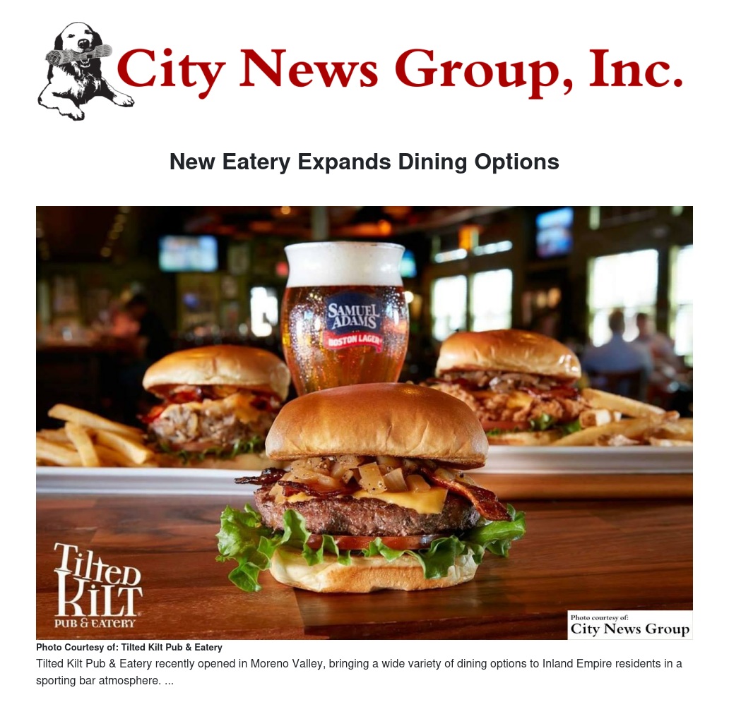 "With the Tilted Kilt opening, the City of Moreno Valley is pleased with the expansion of our restaurant community," said Mayor Dr. Yxstian Gutierrez. "Many of our residents really enjoy the sports bar experience. The great pub food and a terrific staff promise a fun atmosphere for diners and sports fans."