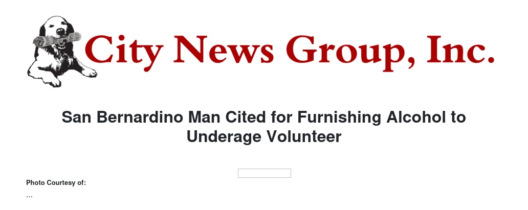 San Bernardino Man Cited for Furnishing Alcohol to Underage Volunteer